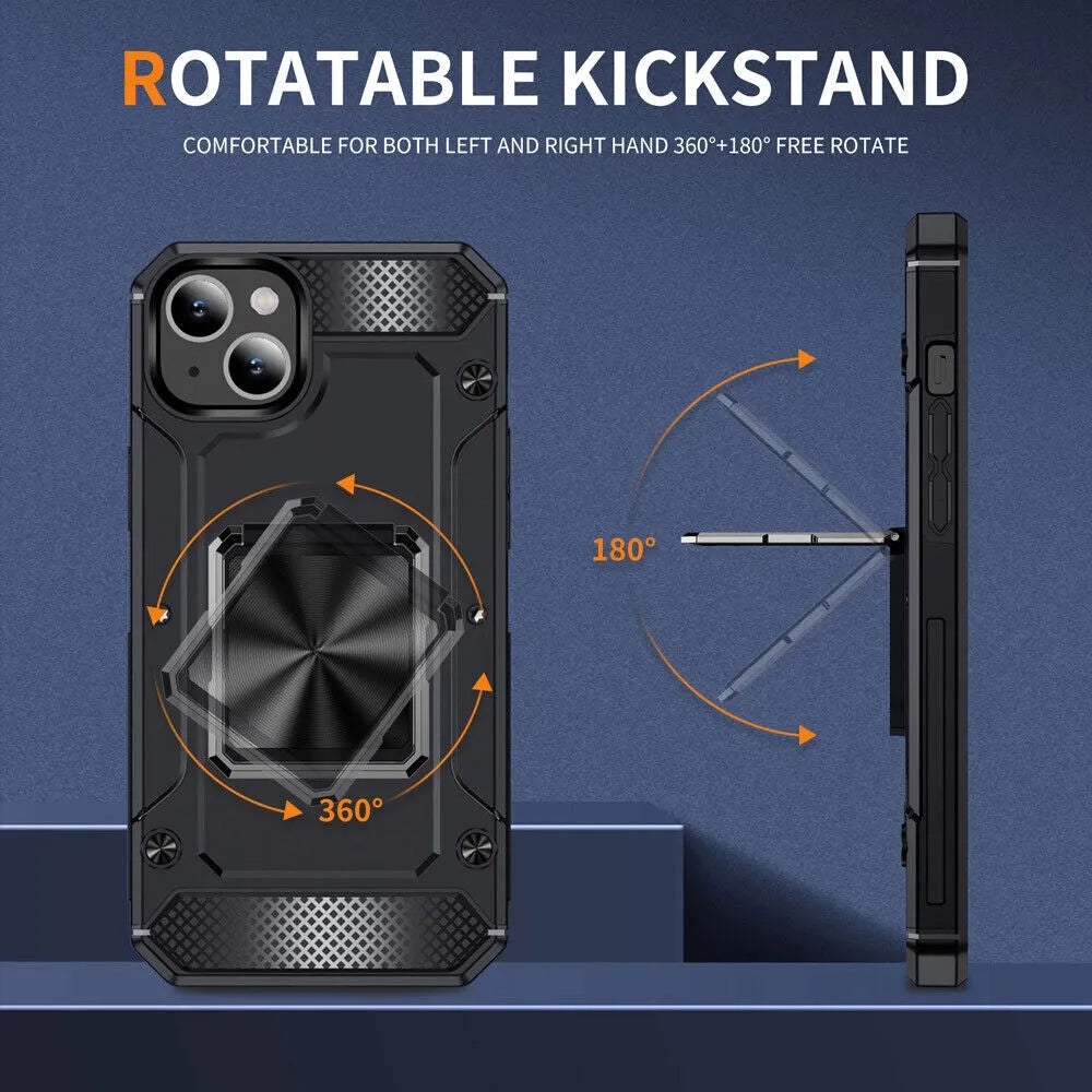 For Apple iPhone 11 Heavy Duty Rotating Bumper Stand Case Black