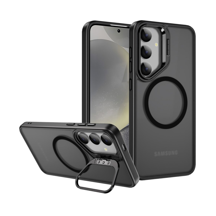 For Samsung Galaxy S24 / S25 Skin-Feel Camera Holder Magsafe Case Black