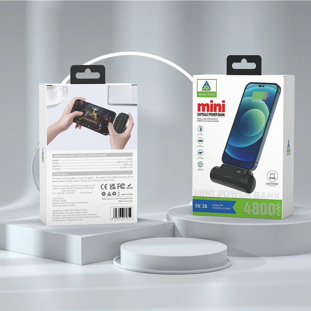 Aokus AK02 Capsule Portable Compact Built in Type-C Docking External Power Bank 4800 mAh Black