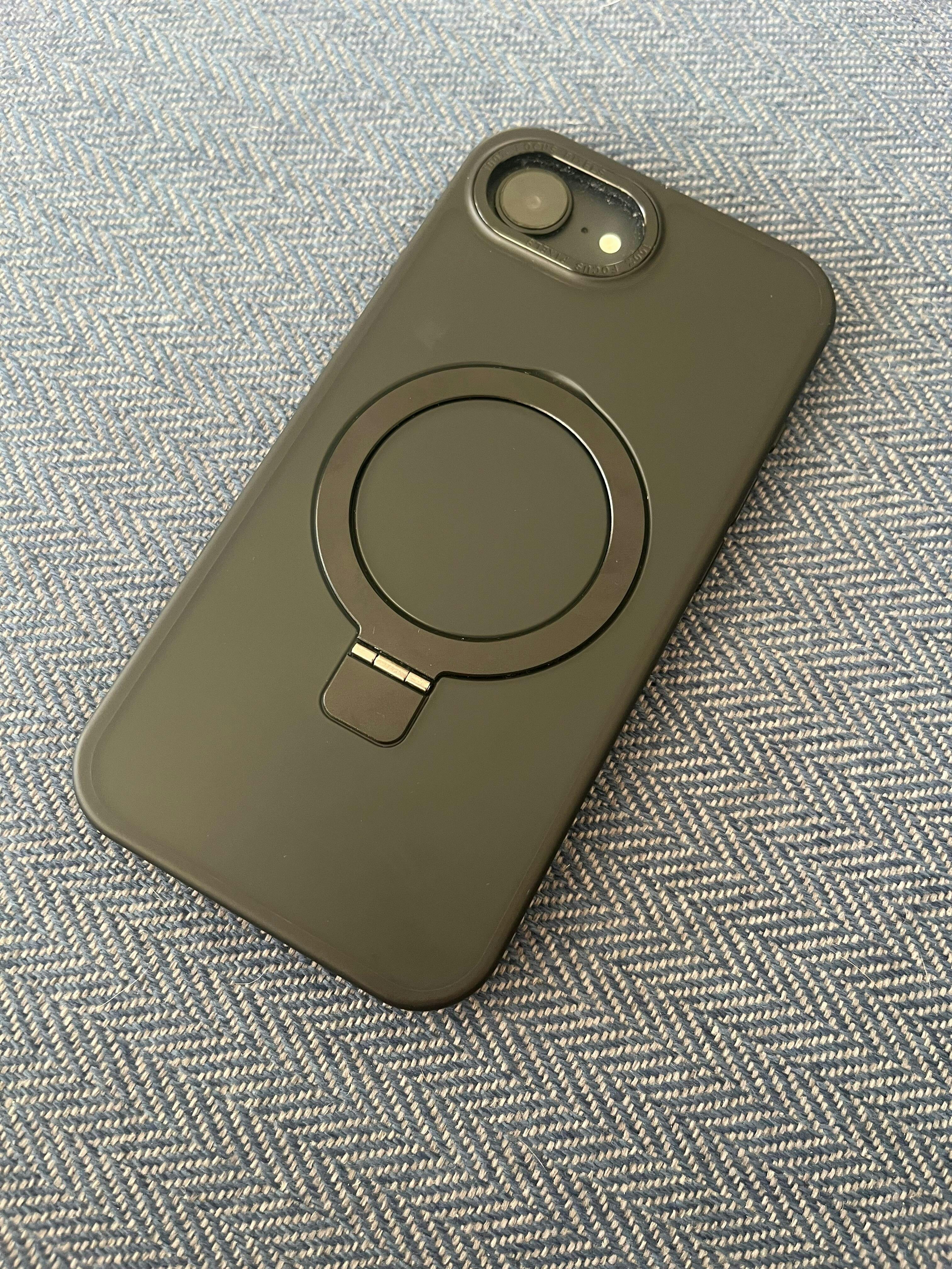 For Apple iPhone 16E Skin-Feel Magsafe Ring Stand Case Black