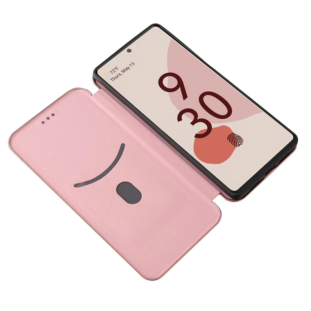For Google Pixel 6 Pro Carbon Fiber Wallet Case Pink