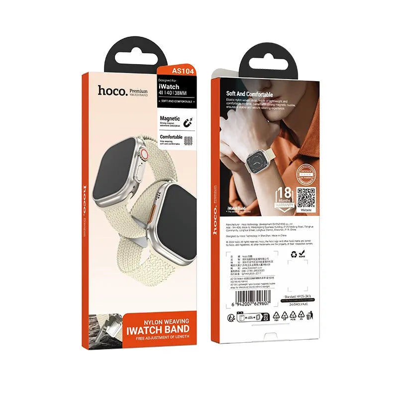 Hoco AS104 Lightweight Nylon Braided Magnetic Buckle Strap For iWatch 42/44/45/49mm StarLight