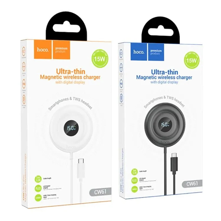 Hoco CW61 Phantom Magnetic Wireless Fast Charger With Digital Display Black