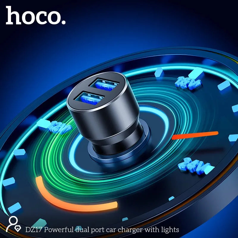 Hoco DZ17 Powerful Dual USB LED Port Car Charger Black