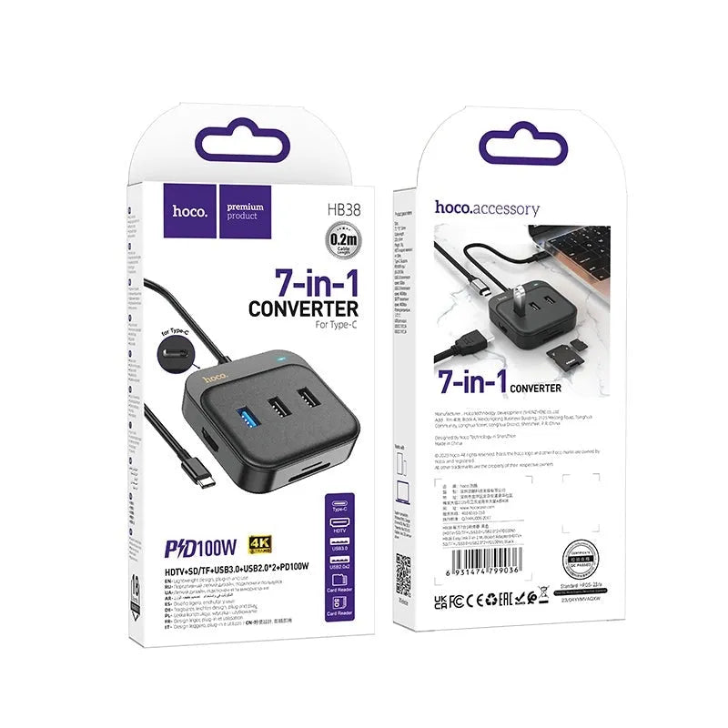 Hoco HB38 7-in-1 4K Ultra HD Converter HDTV+ SD/TF+ USB3+ USB2* 2+ PD100 100W Black