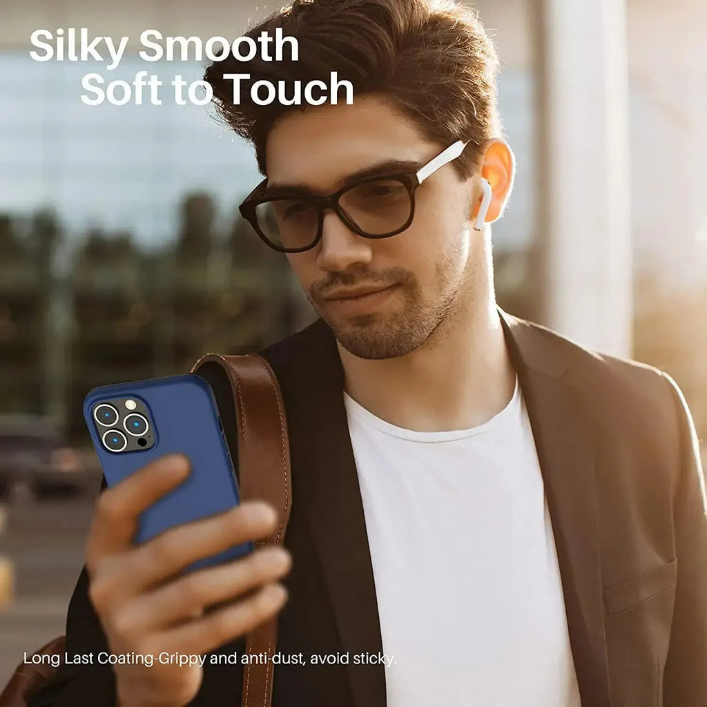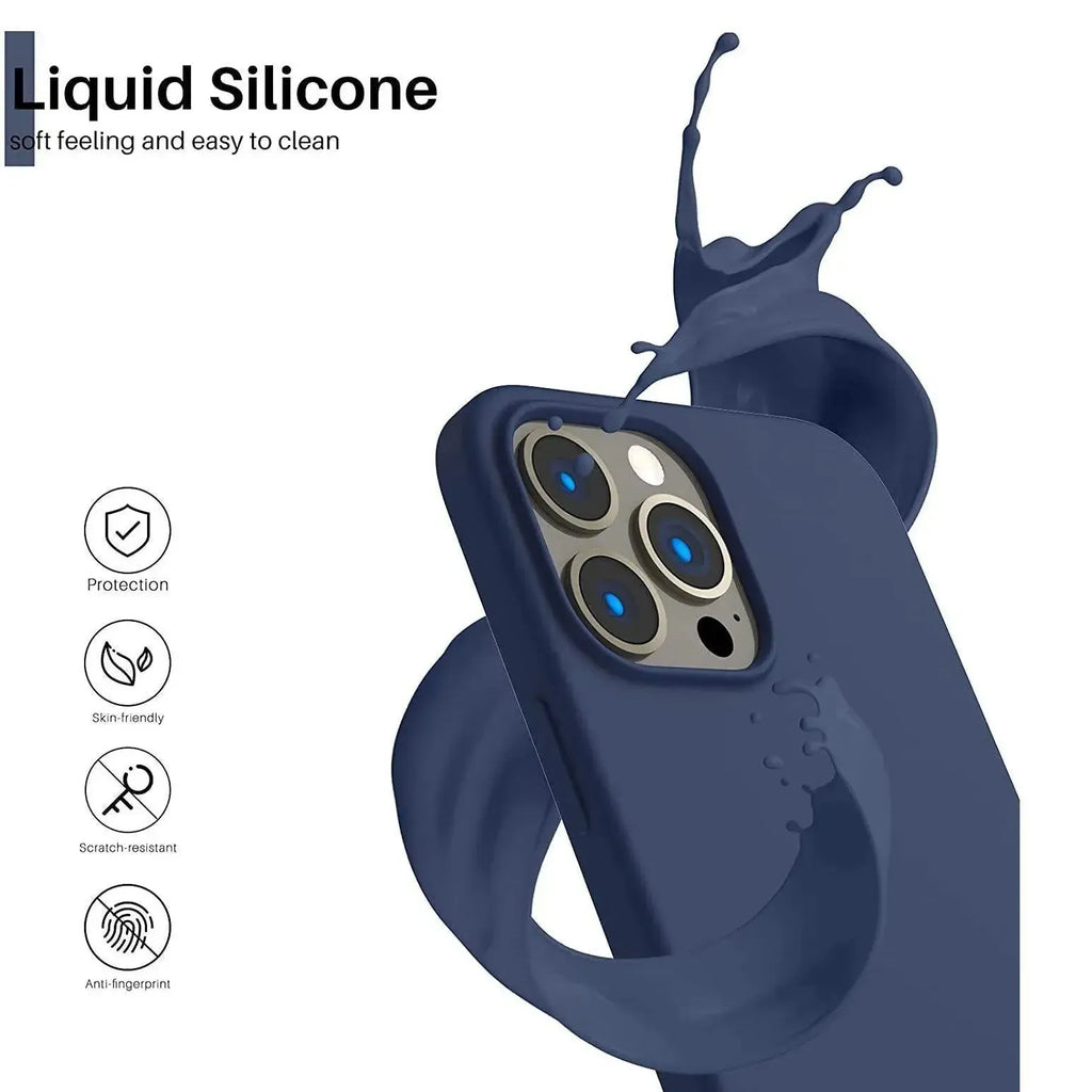 Liquid Silicone Case For Apple iPhone 13 Pro Max Luxury Shockproof Phone Cover Blue
