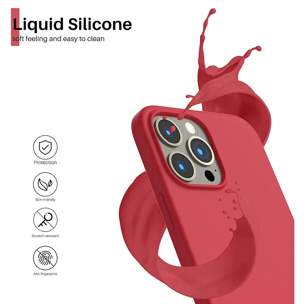 Liquid Silicone Case For Apple iPhone 13 Pro Max Luxury Shockproof Phone Cover Red