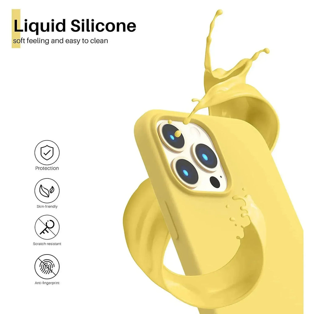Liquid Silicone Case For Apple iPhone 13 Pro Max Luxury Shockproof Phone Cover Yellow