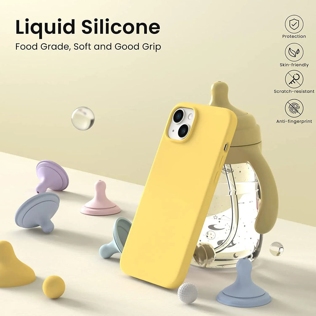 Liquid Silicone Case For Apple iPhone 14 Plus Luxury Thin Phone Cover Yellow