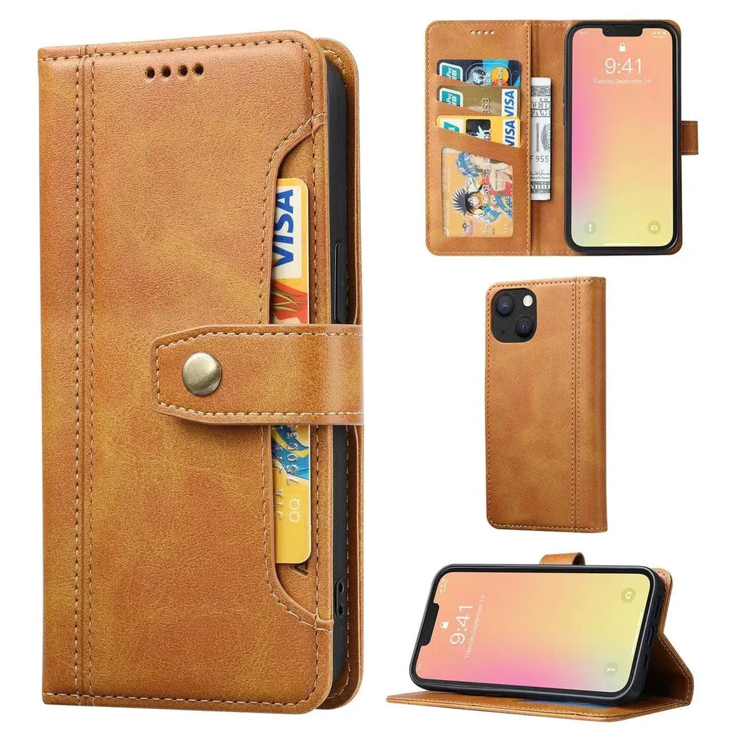For Apple iPhone 14 (6.1") Stitched Card Slots Premium Aokus Wallet Case - Khaki