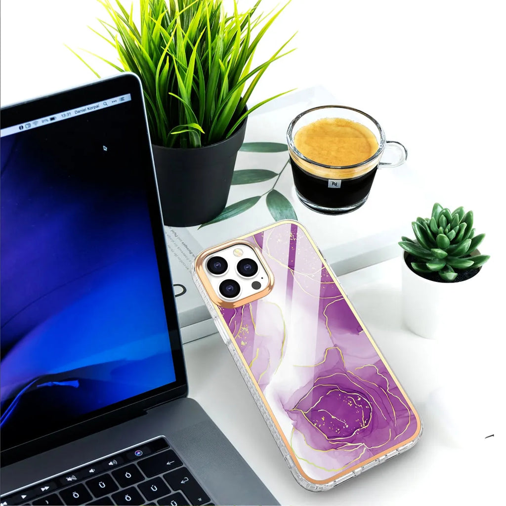 For Apple iPhone 14 Plus Premium Marble Case Purple Flower