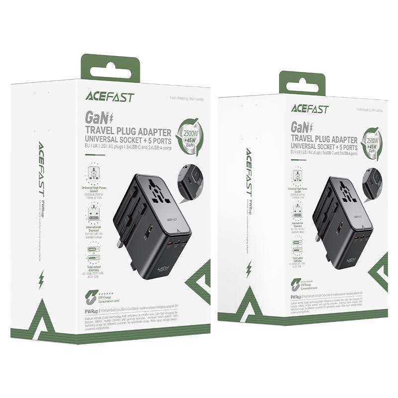 ACEFAST Z8 PD 45W GaN 3 USB-C & 2 USB-A Multifunctional Charging Adapter Black