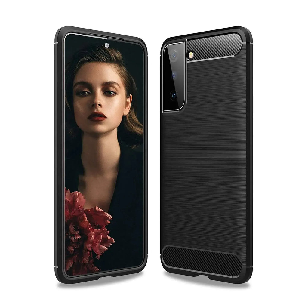 TPU Phone Cover For Samsung Galaxy S21 Plus Carbon Fiber Case Black