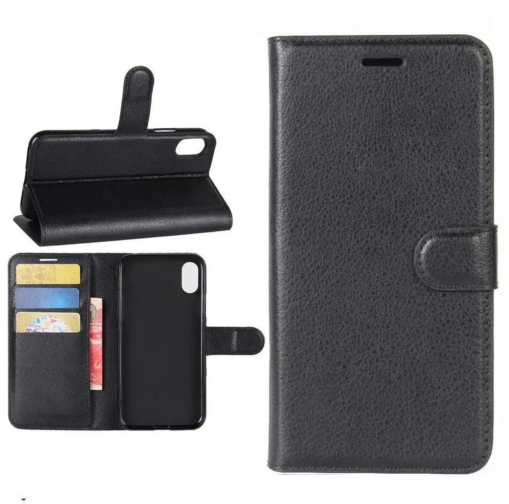 For Apple iPhone XR Wallet Case Cover PU Leather Holder Card Slots Black