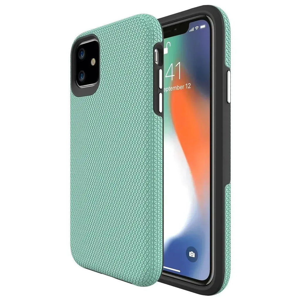 For Apple iPhone 13 Pro (6.1") Dotted Shockproof Hybrid 2 in 1 Case Mint Green