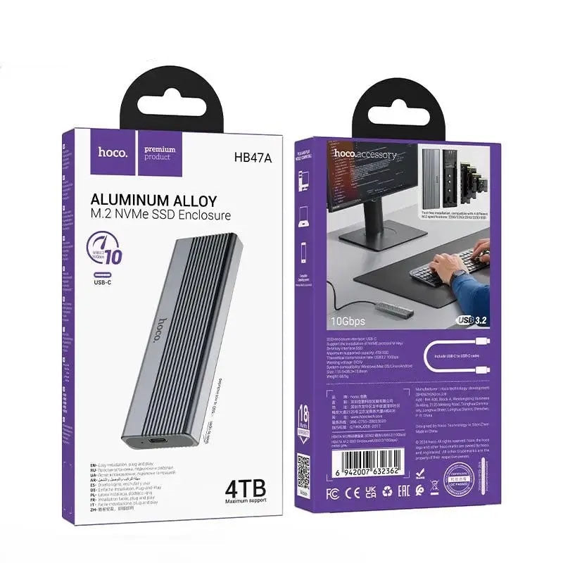 Hoco HB47A M.2 SSD Enclosure (USB3.2/10Gbps) – Gray