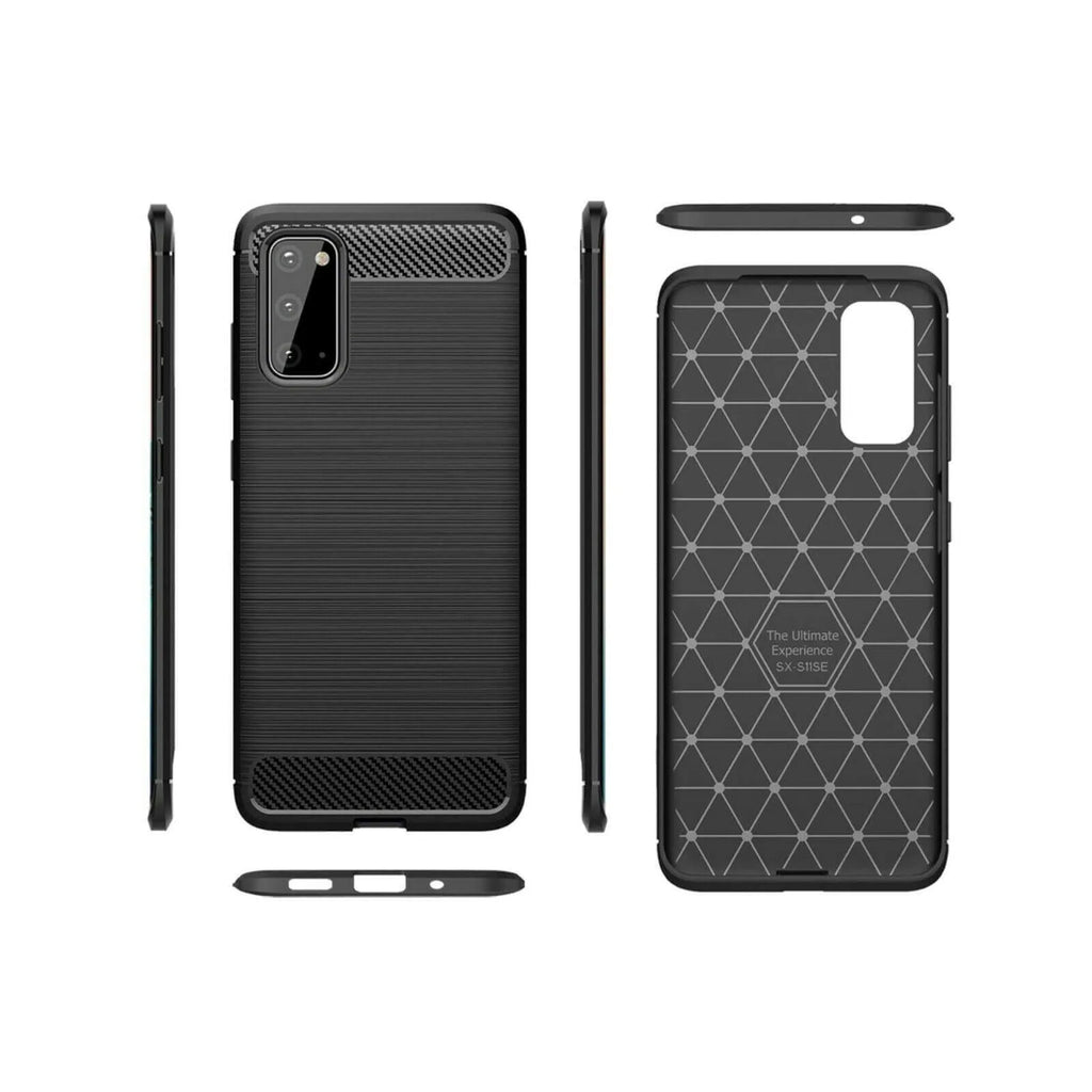 For Samsung Galaxy S20 / S20 5G Carbon Fibre Design Case TPU Cover - Black
